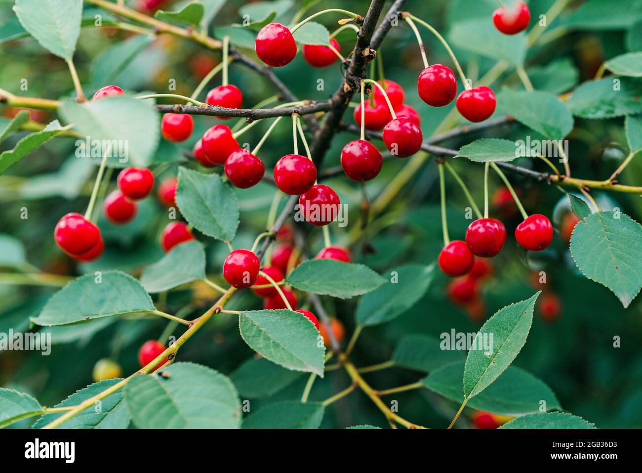 Bunches Of Ripe Red Cherries On A Tree Branch Organics Agriculture Soft Selective Focus Stock Photo Alamy
